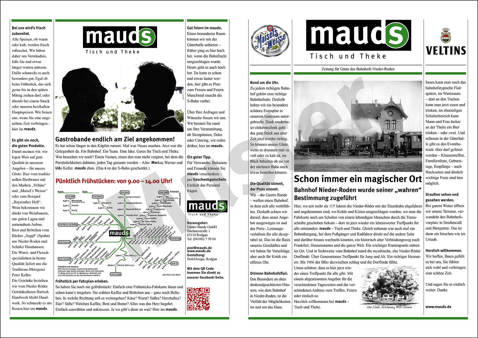 Das mauds ist seit seiner Eröffung im alten Bahnhof Nieder-Roden beheimatet. Die prominente Lage zwischen altem Ortskern und Neubauvierteln jenseits der S-Bahntrasse macht es zu einem besonderen Lokal. Das Erscheinungsbild bezieht sich auf die Geschichte des Bahnhofsgebäudes ebenso wie dessen Bedeutungsverlust nach der S-Bahnanbindung zur Jahrtausendwende.